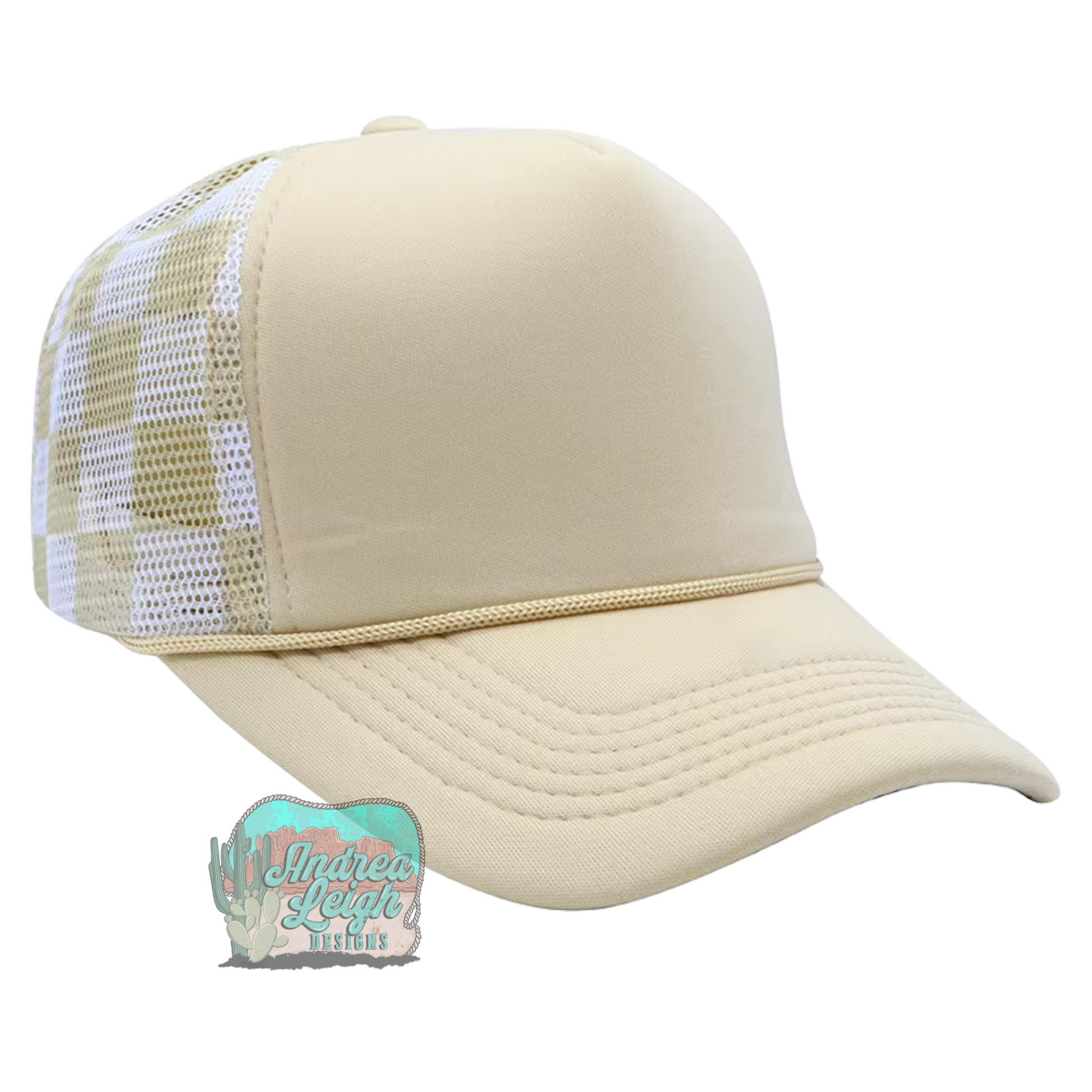 Beige Checkered Trucker Hat